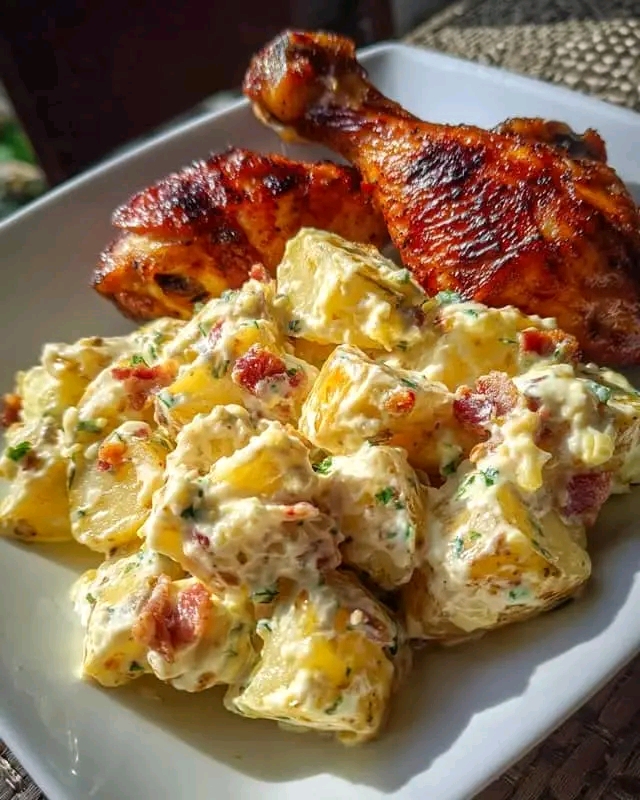 Whether you’re feeding family, hosting a casual gathering, or simply treating yourself, this creamy-loaded potato salad and juicy chicken drumsticks combo is a reliable, delicious choice. It celebrates simple ingredients prepared with care, proving that comfort food doesn’t need to be complicated – just honest, flavorful, and made with love.