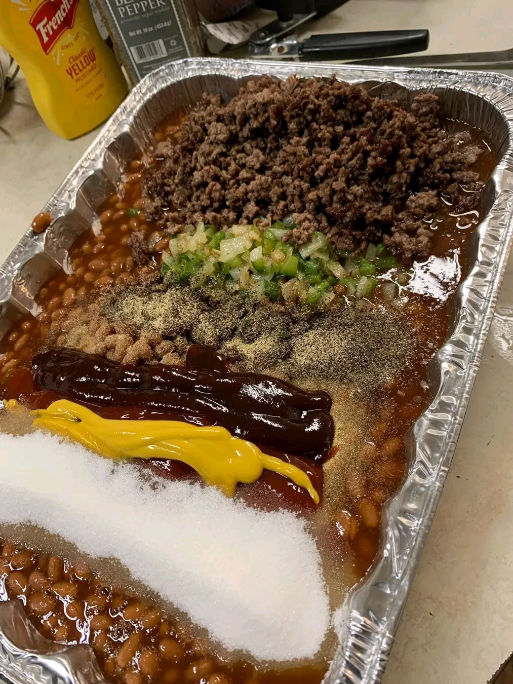 Baked beans have deep roots in American cuisine, especially in Southern and barbecue traditions. Originally influenced by Native American cooking methods, the dish evolved with European settlers who added sweeteners and meats. Today, loaded baked beans like this version are a staple at BBQs, potlucks, and holiday gatherings, symbolizing comfort, abundance, and communal dining.