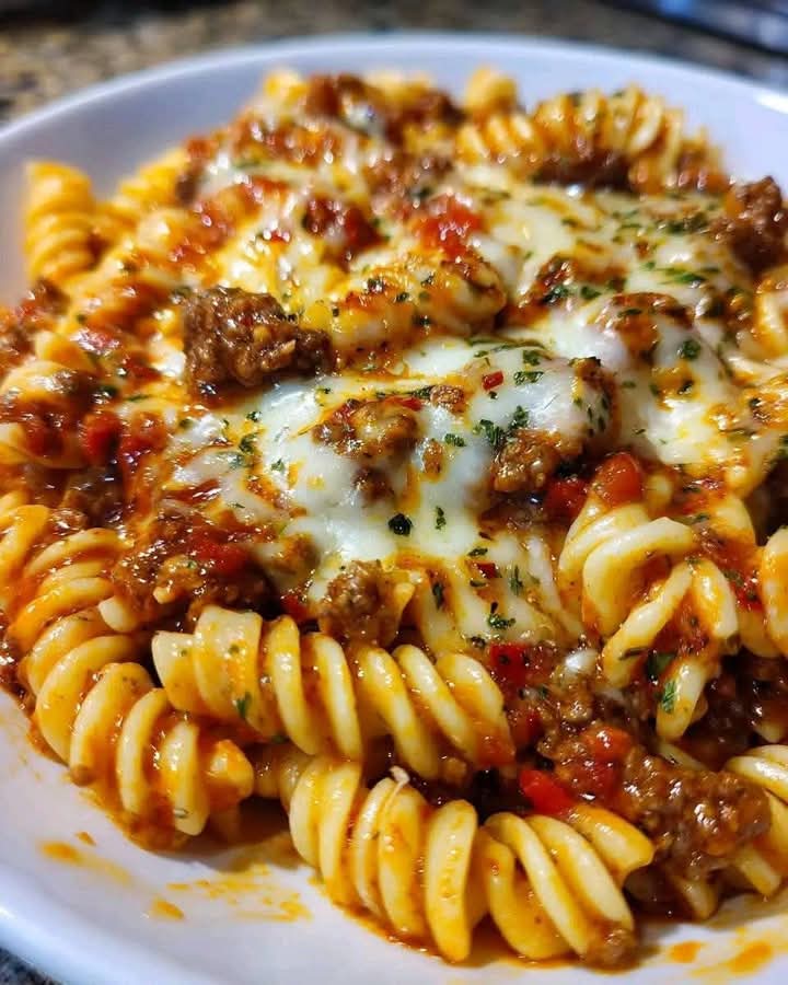 Chessy Velveeta Rotini with Italian Beef Marinara