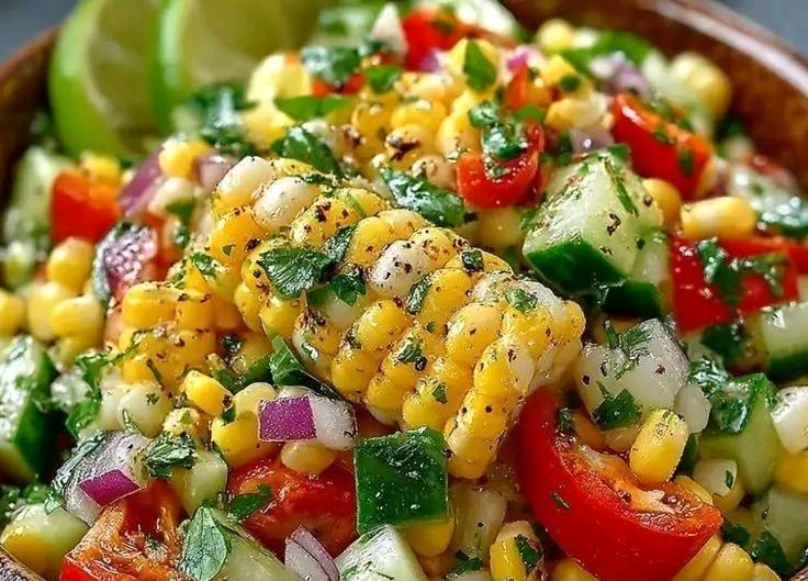 This salad is crisp, juicy, and bursting with fresh flavors. The sweetness of the corn pairs perfectly with the acidity of lime and the brightness of herbs. Each bite offers a satisfying crunch balanced with a light, tangy dressing.