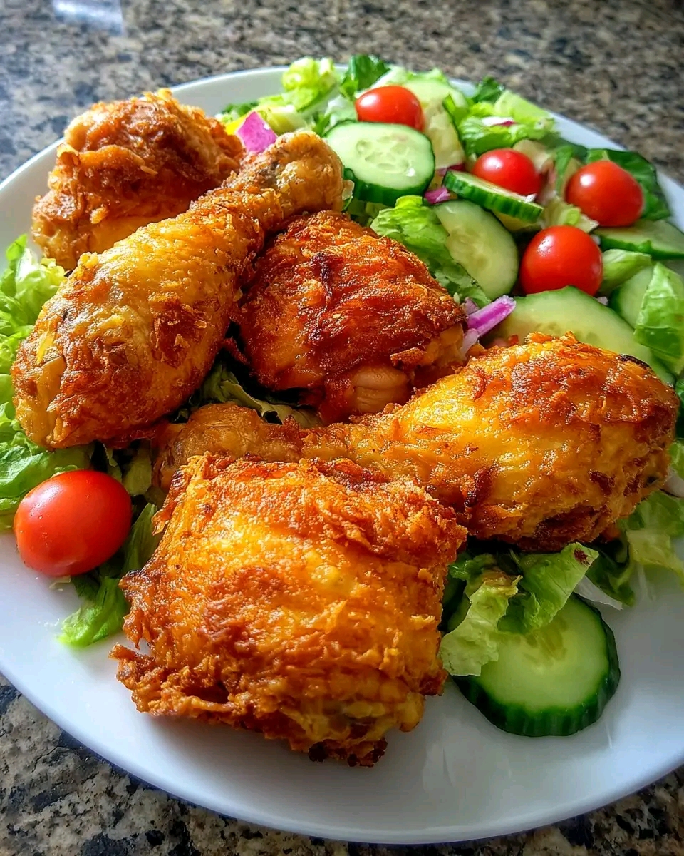 This Oven-Baked Crispy Chicken & Fresh Salad is the ultimate healthy comfort meal. Crispy, cheesy chicken drumsticks meet a light, zesty salad – perfect for weeknight dinners or meal prep. It’s simple enough for beginners yet delicious enough for food lovers. The contrast between warm, juicy chicken and cool, crunchy greens makes every bite satisfying. Let’s dive into this balanced, protein‑packed dish!